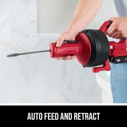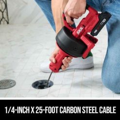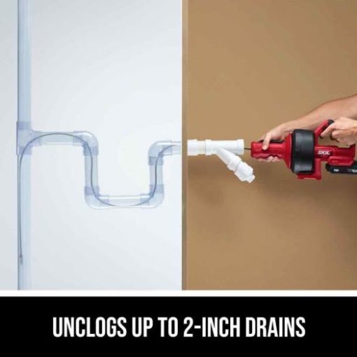 Clear tough clogs and keep bathtub, shower, and sink drains flowing freely with the SKIL MULTIVOLT Power Snake Drain Cleaner. This cordless power snake features a -inch by 25-foot carbon steel cable for extended reach and maximum durability around elbow joints and curves to clear drains from -inch to 2 inches in diameter. Its variable speed trigger delivers precise control while its auto feed cable extends and retracts with the press of a paddle lever. A foot base offers sturdy support while the drain auger is in use, and a cleaning port drains excess water after clearing a clog and retracting the cable from a drainpipe. Featuring SKIL MULTIVOLT technology, this drain snake is compatible with either SKIL 12V batteries for a compact, lightweight tool or SKIL 20V batteries for more power and longer runtime. This 20V cordless drain cleaner kit includes a PWRCORE 20 2.0Ah lithium battery and PWRCORE 20 30W charger.