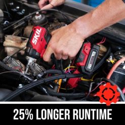 The SKIL PWRCORE 12 Brushless 12V 3/8-inch Impact Wrench gives you big power in a compact, lightweight package with up to 125 foot-pounds of fastening torque, 200 foot-pounds of nut-busting torque, and up to 3400 IPM for driving tough nuts and bolts. At 1 inch shorter than its previous generation, it’s an ideal cordless impact wrench for working overhead in hard-to-reach spaces. The power tool features a 3/8-inch square anvil with a friction ring for easy socket changes, and its digital brushless motor combined with three-speed selection provides high-performance power and precise control. Its Halo Light provides 5X more light than common LEDs while reducing shadows-and lights up your workspace for up to 10 minutes.